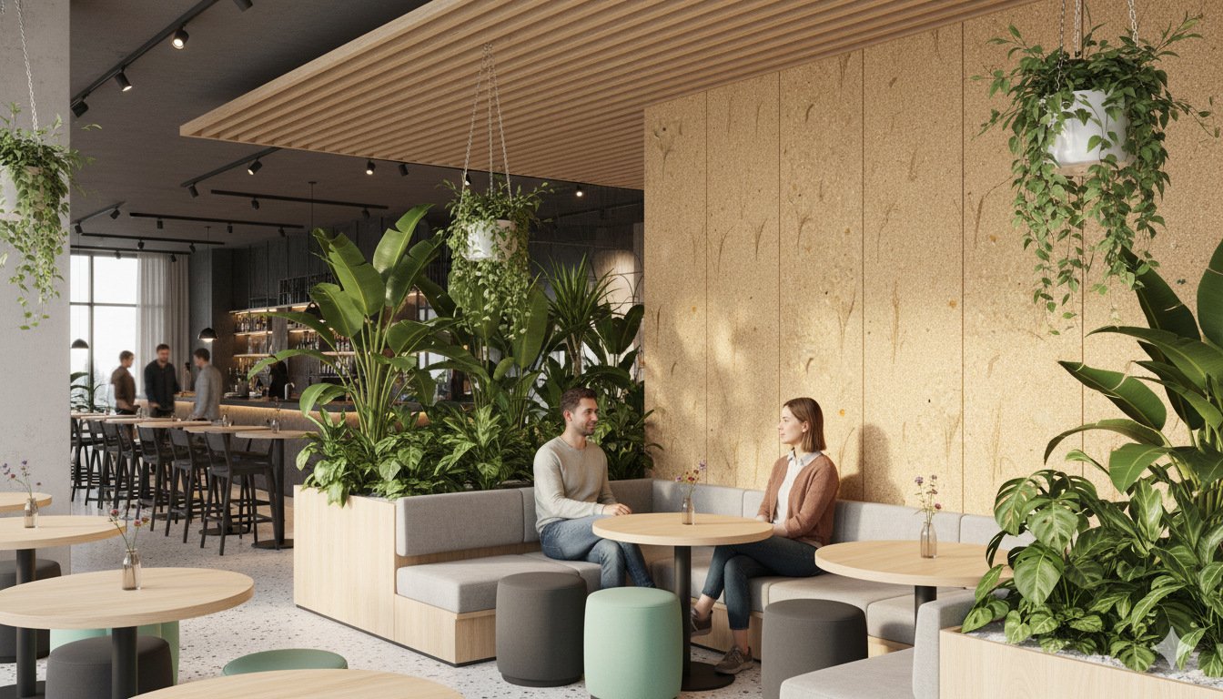 Compostboard is used in the kitchen area together with other agricultural biomaterials materials.