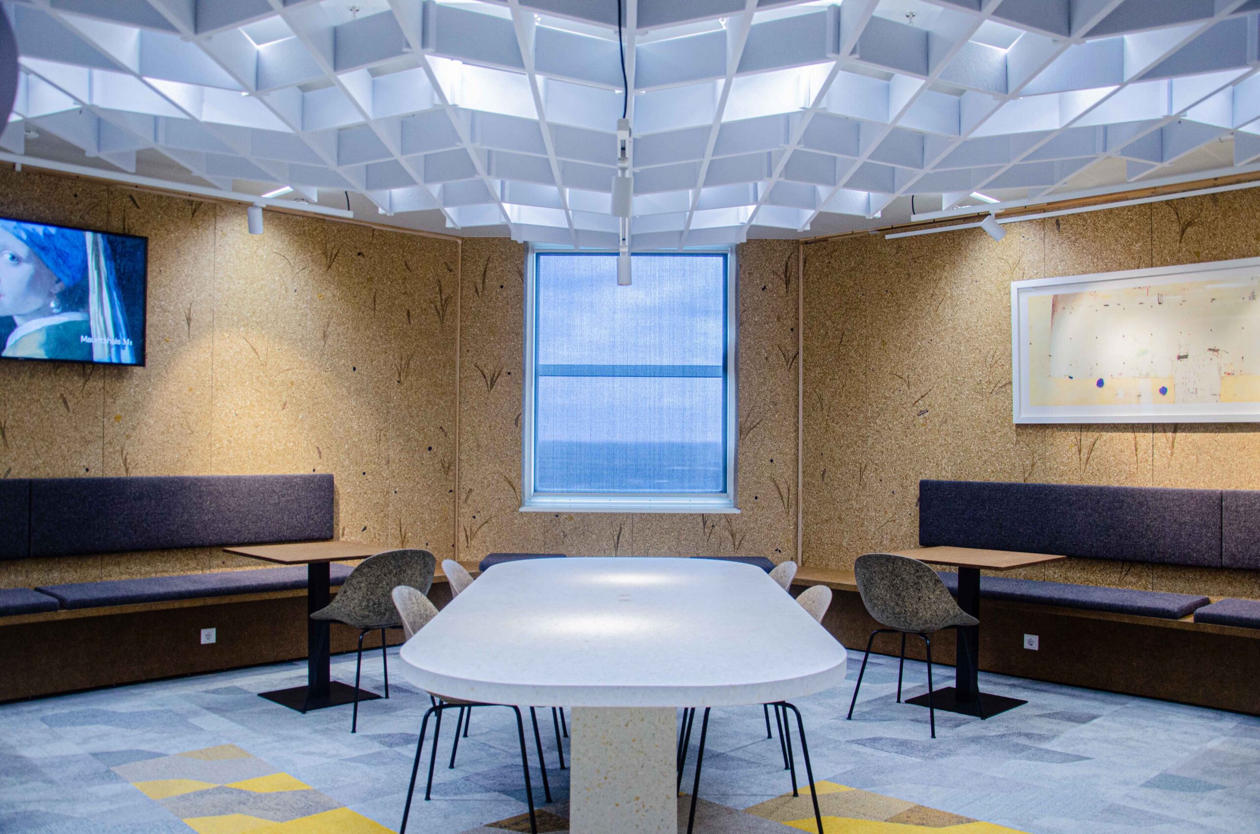 Our panels were applied in the meeting and social spaces, where they contribute to a warm, natural aesthetic and a tangible sense of comfort.
